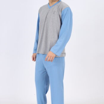 Pijama de Franela para Hombre Color Celeste Modelo JESH – Tallas S, M, L
